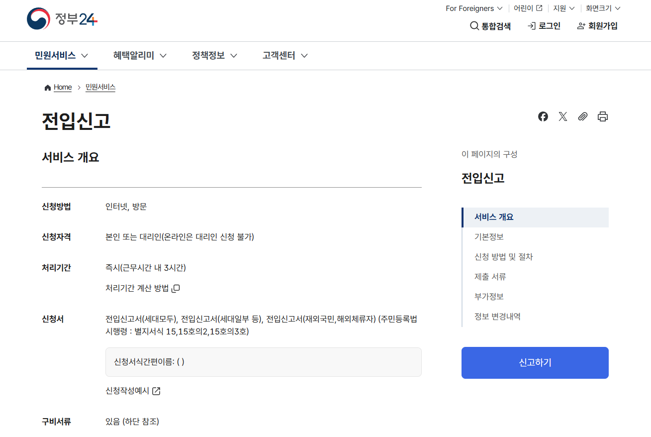 전입신고는 새로운 거주지로 실제 이동한 뒤 일정 기간 내 신고해야 하는 기본 행정 절차입니다.
